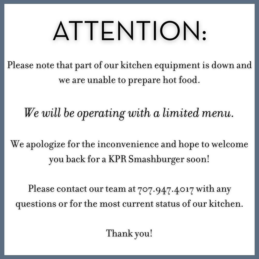 The Kitchen at Priest Ranch combines the vibrant flavors of seasonal American cuisine with the regional influences of the Midwest. At The Kitchen at Priest Ranch (or KPR), we source only the freshest locally grown ingredients to create high-quality, approachable dishes that showcase Napa Valley’s bountiful produce in each bite. We believe that great food should be accessible to everyone, so we offer a warm and inviting atmosphere, making KPR the perfect spot for a casual yet elevated experience.